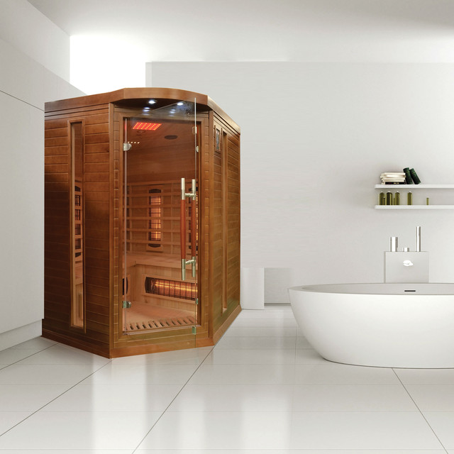 Інфрачервона сауна (інфрачервона, низька температура) без пари і з низькою температурою повітря (до 60 ° C), де замість традиційних печей використовуються кварцові, керамічні або вуглецеві інфрачервоні нагрівачі. Канадський хвойний будиночок може бути встановлений у ванній кімнаті, спальні, вітальні або іншій кімнаті. Нормального джерела живлення 230 В достатньо для роботи. Заводська настройка за замовчуванням після включення становить 60 хвилин. Він має автоматичний вимикач, який не дозволяє випадково залишати сауну включеної занадто довго, тому її можна безпечно використовувати.